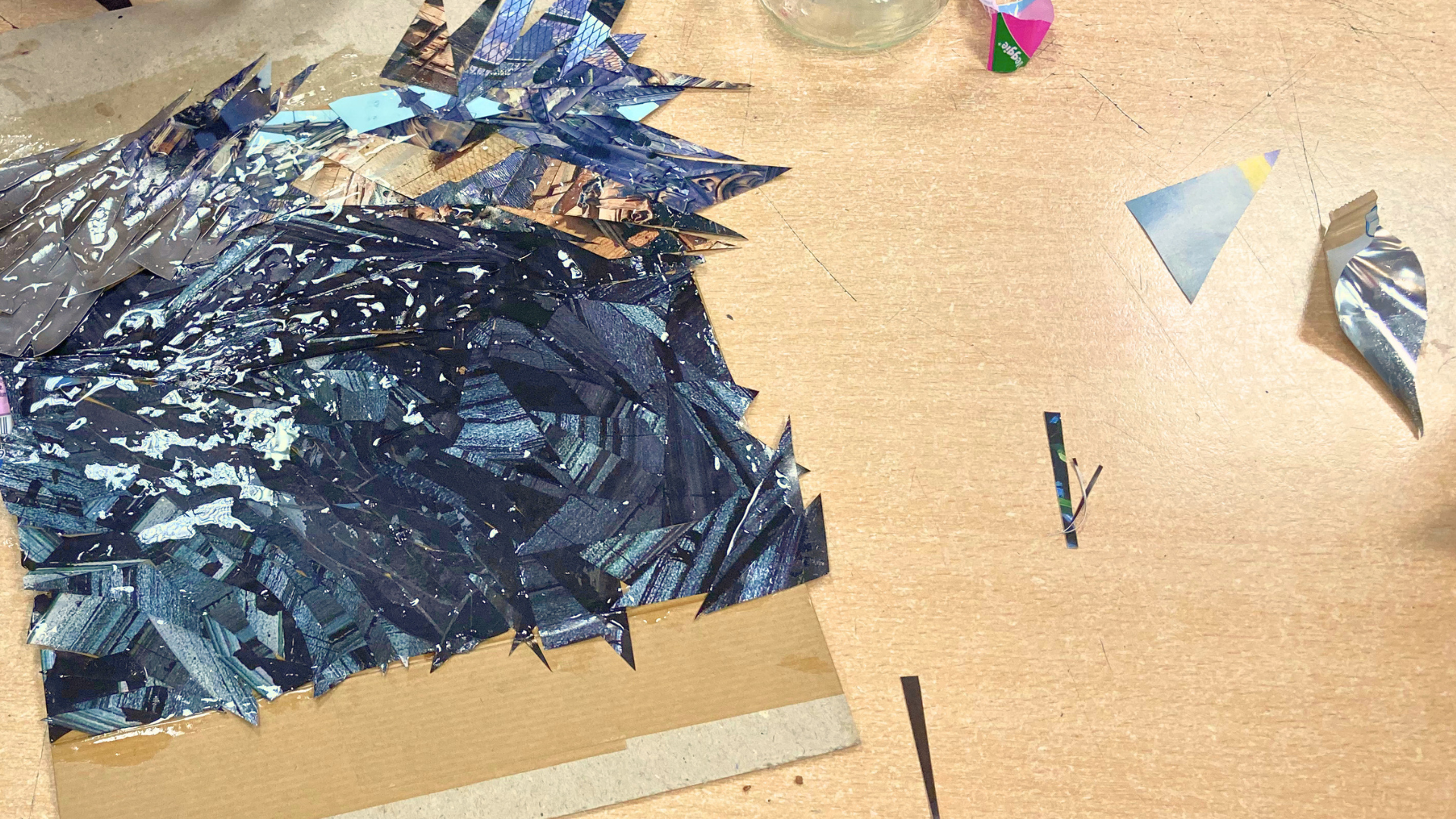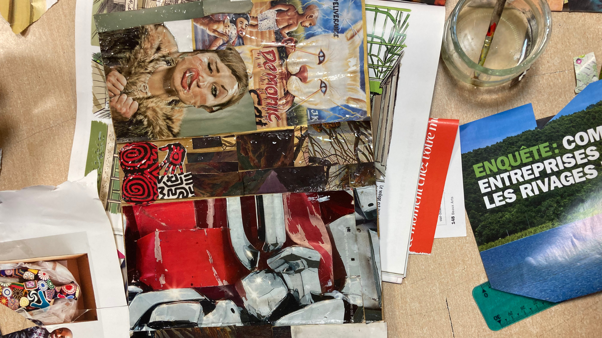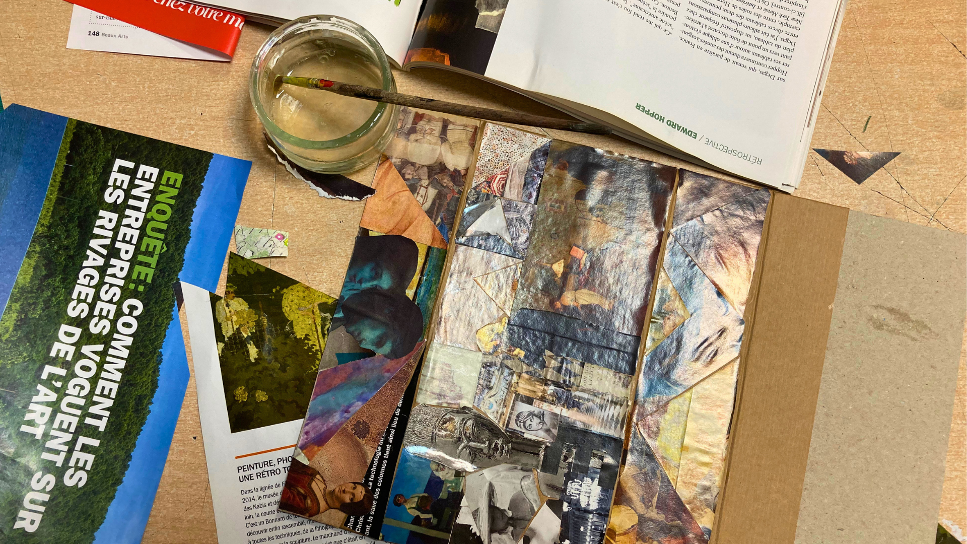 Les élèves de 3e se sont inspirés de la marqueterie de paille pour travailler la technique du collage à partir de journaux.