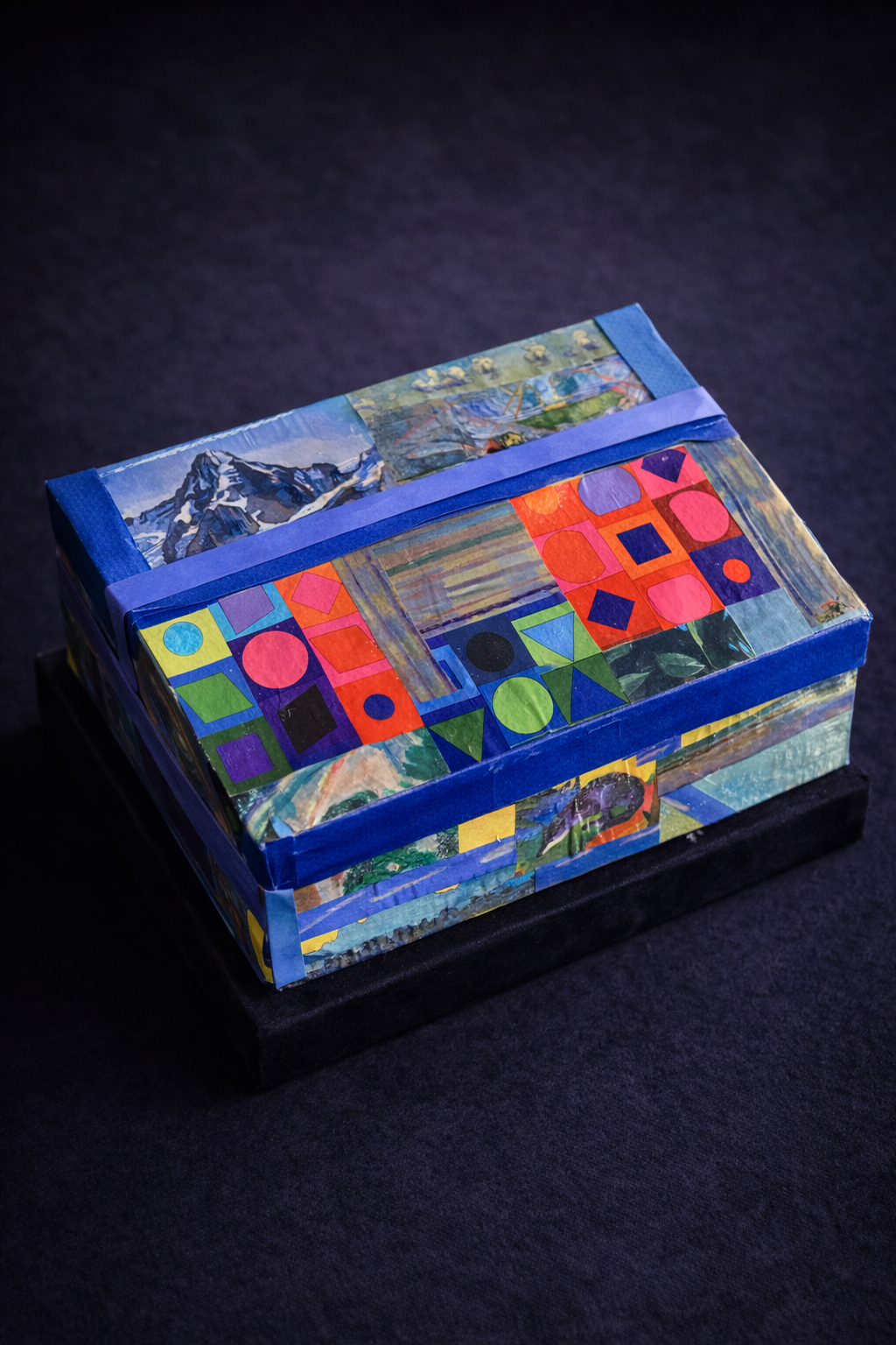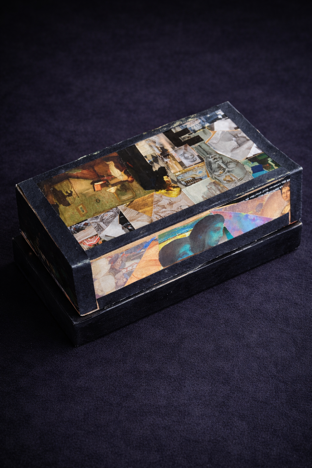 Ce travail a abouti à la création d’un écrin, sous la forme d’une boîte, à la fois fonctionnelle et décorative, mettant en valeur le soin apporté à la composition et à l’assemblage.